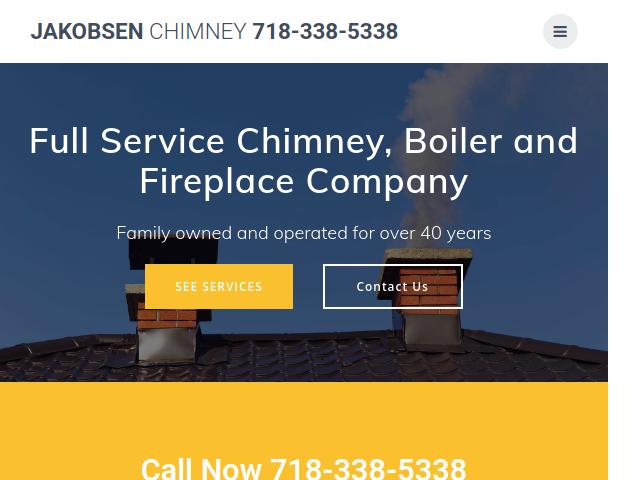 Jakobsen Chimney and Boiler specializes in chimney, boiler, and fireplace services for homes and businesses, particularly in older brownstone and pre-war buildings. The company has served Brooklyn, Manhattan, Queens, Staten Island, Bronx, and parts of New Jersey for over 40 years, emphasizing professional repairs, cleanings, and installations